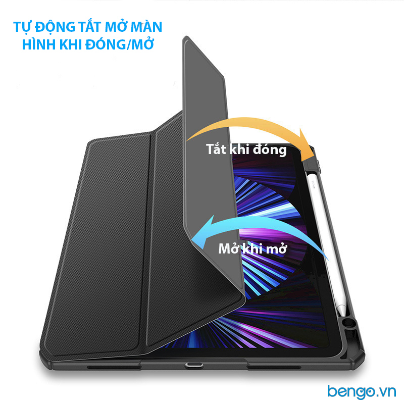 - Nắp gập 3 khúc với chức năng Smartcover tự động tắt mở màn hình, chức năng dựng đứng máy để xem phim hay làm việc cùng với mép có nam châm để hít nhẹ vào thân ốp đảm bảo an toàn hơn.