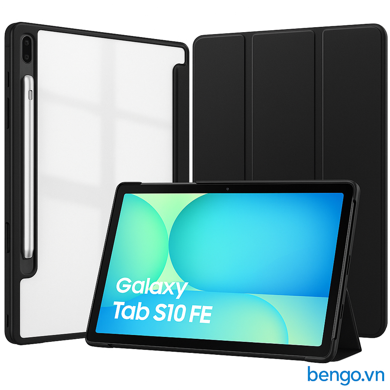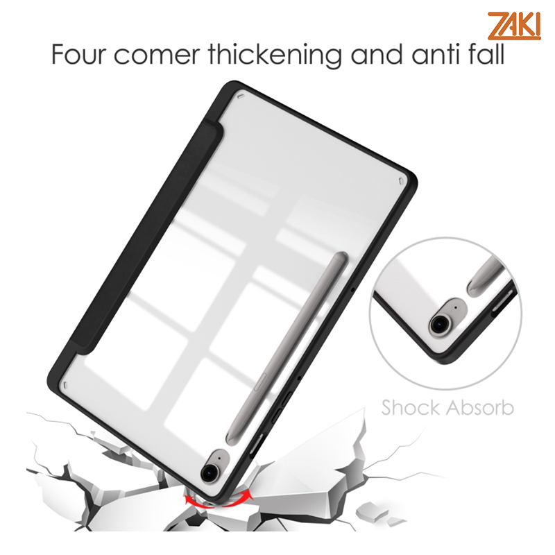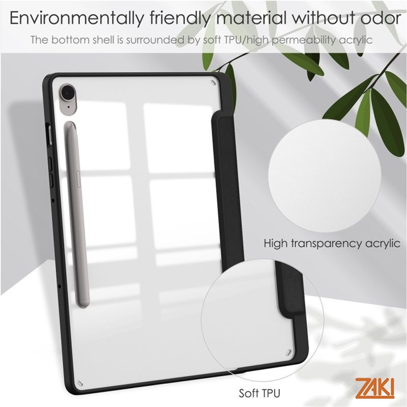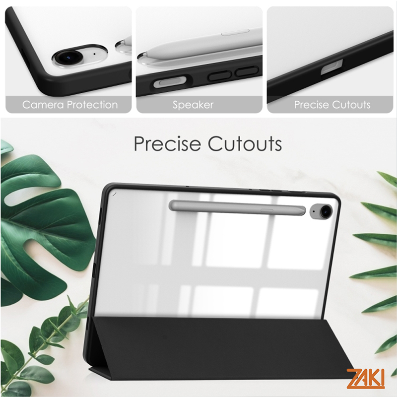 Bao da Galaxy Tab S10 FE/S10 Lite/S9/S9 FE mặt lưng trong suốt Zaki SlimFit Clear (Đen)