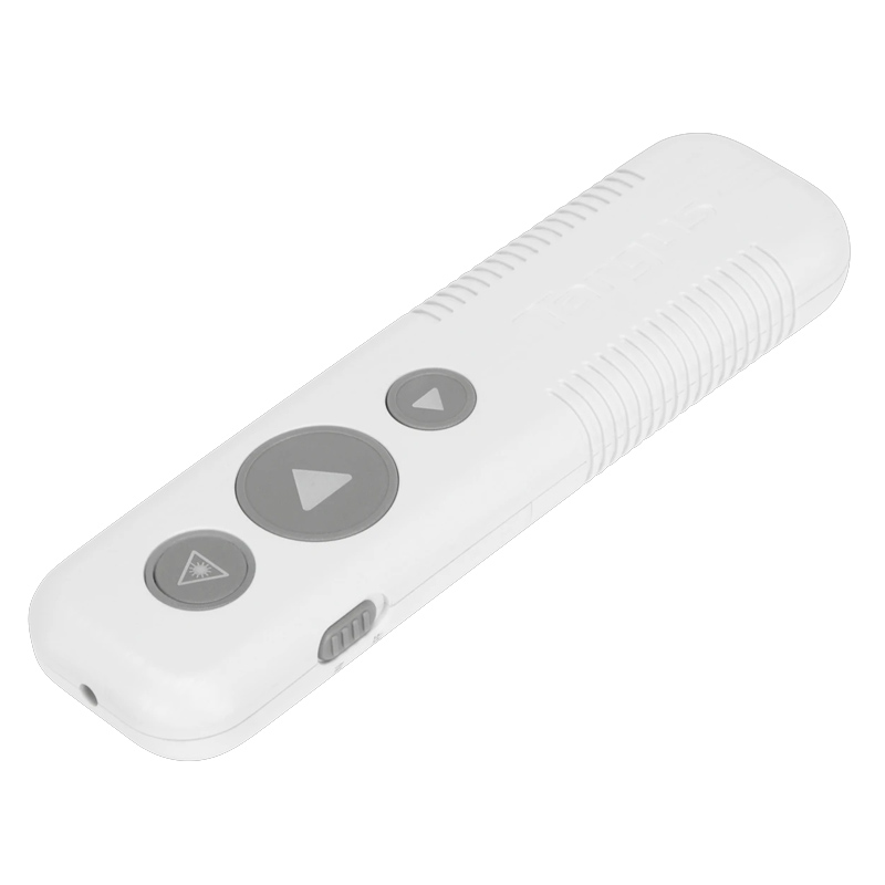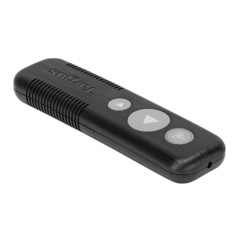 Bút trình chiếu TARGUS Wireless Presenter – Kết nối RF cài đặt trước mà không cần trình điều khiển phần mềm dễ dàng sử dụng. Công nghệ không dây 2.4GHz tầm xa mang đến sự tự do để trình chiếu hiệu quả, lý tưởng cho một phòng họp lớn trong phạm vi 15m. Thiết kế công thái học để tạo sự thoải mái, điều khiển từ xa tiện dụng này có các nút điều khiển trực quan cho chức năng sẽ không gây căng cơ hoặc khiến bạn mất tập trung vào công việc đang làm. Thu hút sự chú ý vào các điểm chính của bạn bằng con trỏ laser màu đỏ có khả năng hiển thị cao được tích hợp sẵn. Bộ thu USB mini được cất giữ một cách thuận tiện trong ngăn Stow-N-Go tích hợp – để nó luôn trong tầm tay và sẵn sàng cho lần sau.