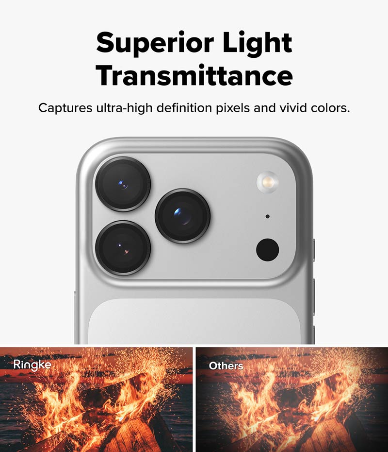- Dán camera iPhone 17 Pro Max / 17 Pro RINGKE Camera Lens Frame Glass gồm 3 lens rời, bảo vệ tốt hơn từng mắt camera.