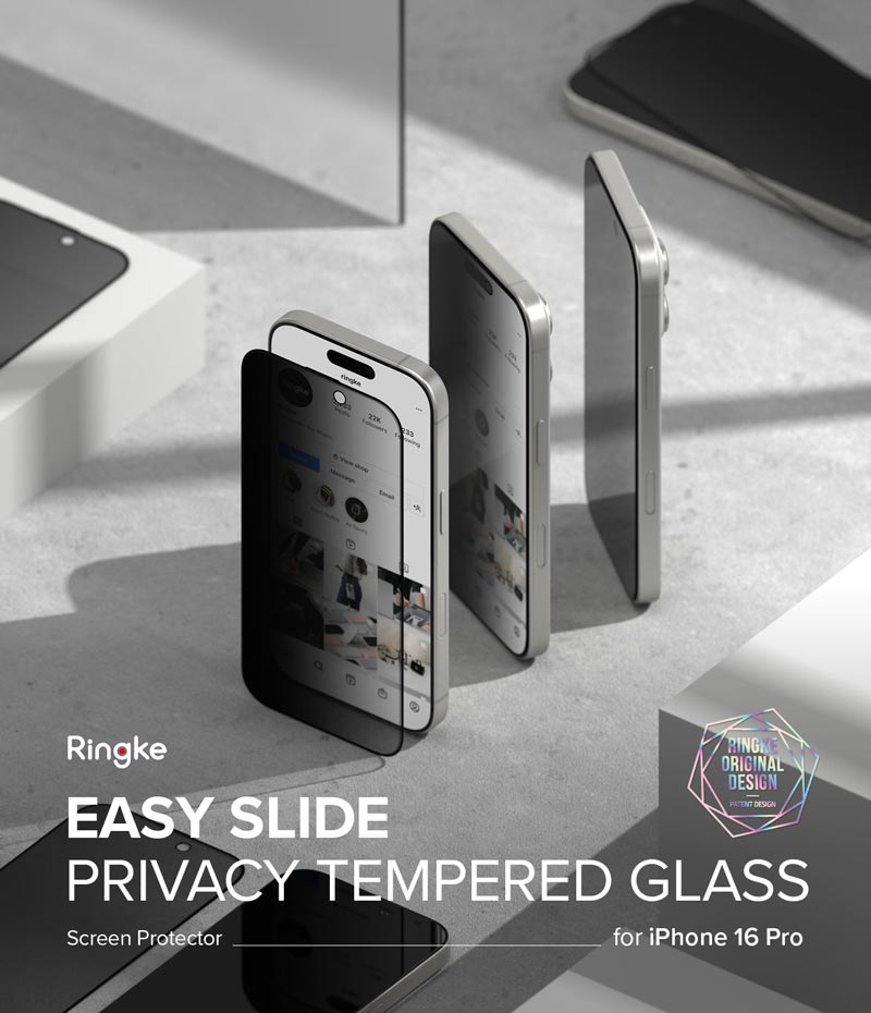 [Combo 2] Dán cường lực chống nhìn trộm iPhone 16 Pro RINGKE Easy Slide Privacy Tempered Glass