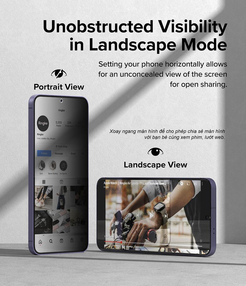 - Dán cường lực chống nhìn trộm Samsung Galaxy S24 Plus RINGKE với độ che phủ toàn diện màn hình có chức năng bảo vệ sự riêng tư cho người dùng