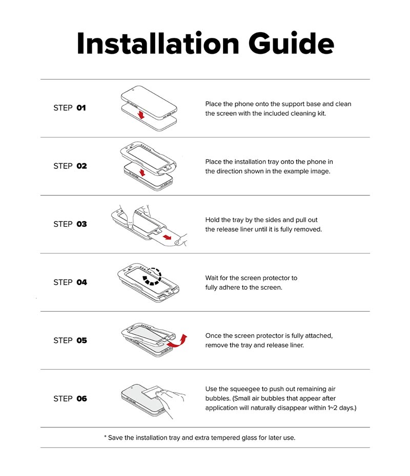 - Dễ dàng tự dán tại nhà với dụng cụ Easy Slide kèm theo giúp bạn canh chỉnh vị trí chính xác hơn, khung dán có thể tái sử dụng cho lần sau.