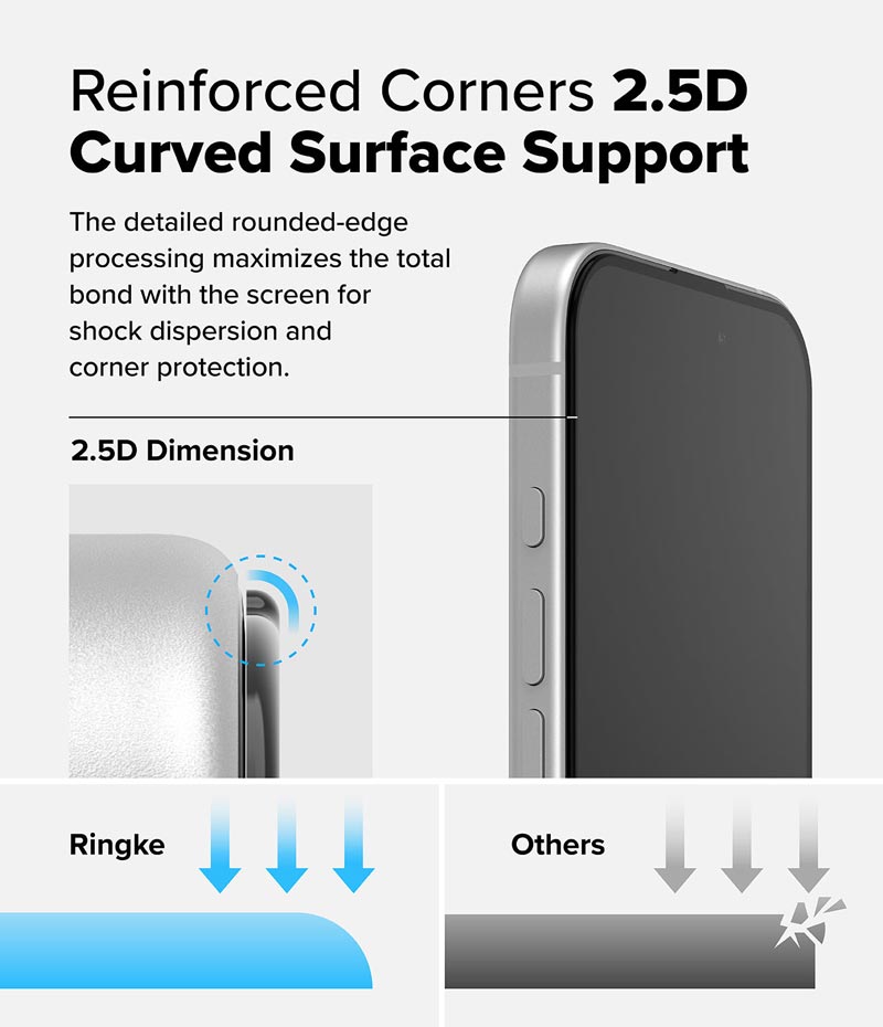 - Mép dán cường lực 2.5D, chuyển tiếp mượt mà giữa màn hình thiết bị và miếng dán cường lực thông qua mép cong mềm mại