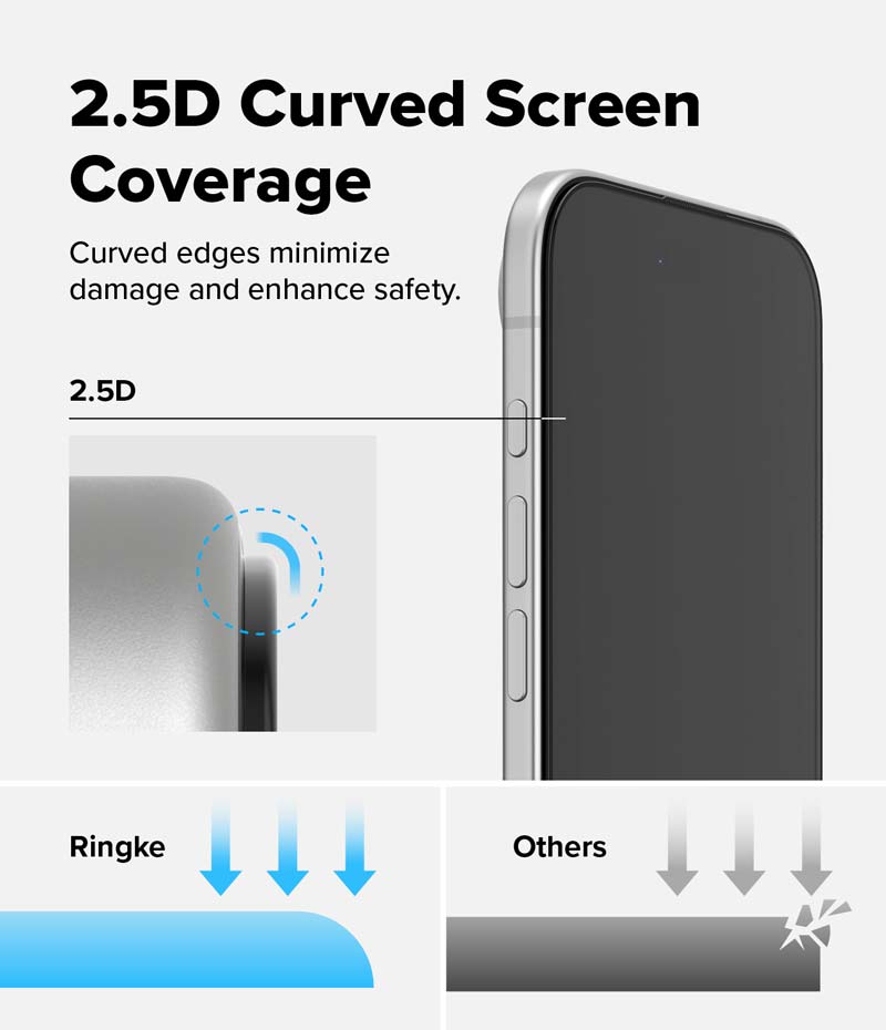 - Mép dán cường lực 2.5D, chuyển tiếp mượt mà giữa màn hình thiết bị và miếng dán cường lực thông qua mép cong mềm mại
