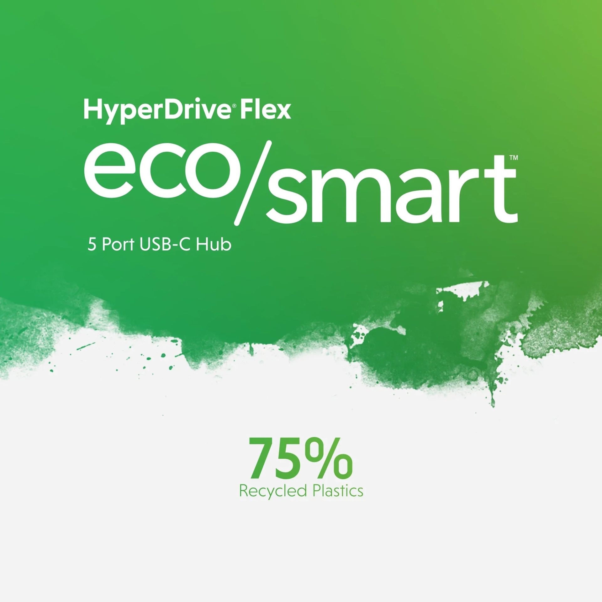 Hãy lựa chọn bền vững mà không ảnh hưởng đến hiệu suất. Hub USB-C HyperDrive Flex được chế tạo từ 75% nhựa tái chế sau tiêu dùng, mang đến một lựa chọn thân thiện với môi trường cho không gian làm việc năng động và táo bạo của bạn.