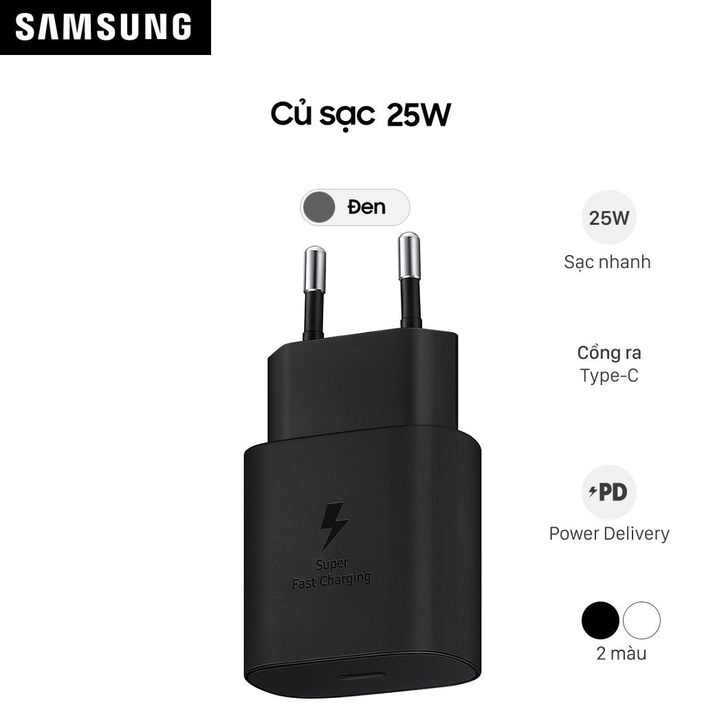 Củ sạc nhanh mới với tính năng Sạc Siêu Nhanh 25W, dành cho thiết bị tương thích với cáp sạc USB Type-C.