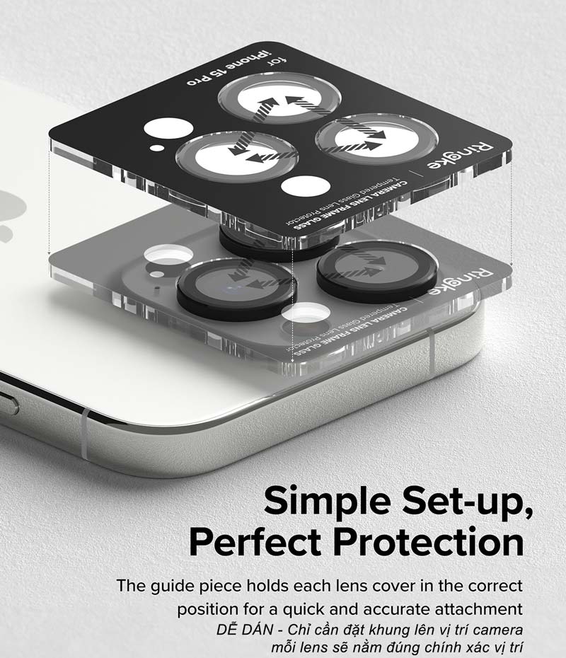 - Dán camera iPhone 15 Pro Ringke Camera Lens Frame Glass gồm 3 lens rời, bảo vệ tốt hơn từng mắt camera