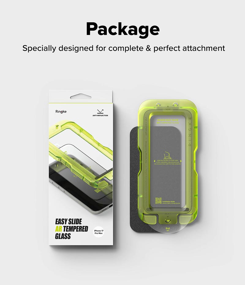 - Dán cường lực chống phản quang iPhone 17 Pro Max RINGKE Easy Slide AR Tempered Glass có lớp phủ chống phản xạ giúp giảm hiện tượng chói loá, tăng cường độ sắc nét và rõ ràng của hình ảnh