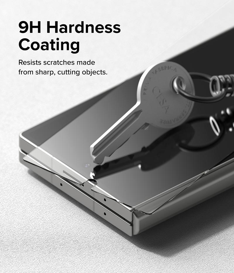 - 9H hardness tempered glass screen protector protects the Galaxy Z Fold 6 cover screen.