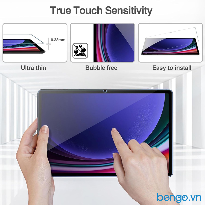- Dán màn hình cường lực Samsung Galaxy Tab S10 FE+ 9H (13.1-inch) vừa vặn và liền mạch với màn hình