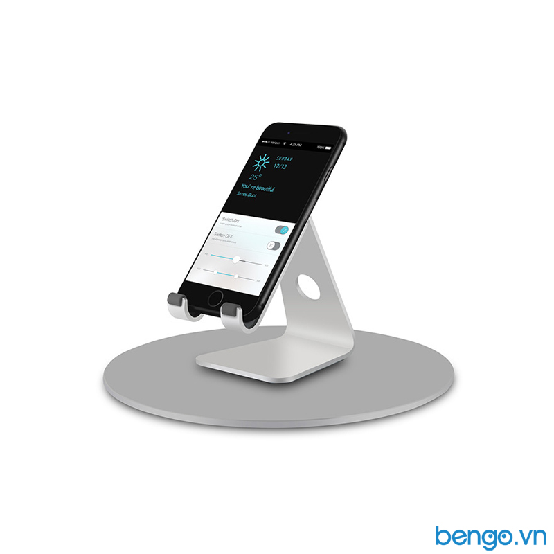 Đế xoay màn hình máy tính, điện thoại 360° được làm từ nhôm nguyên khối có độ bền cực tốt, chống lại mọi khả năng ăn mòn, chịu được các tác động môi trường, …, bề mặt nhẵn mịn giúp dễ dàng vệ sinh, lau chùi khi dính nước hoặc bị đổ cà phê, …, màu bạc sang trọng, phù hợp với các sản phẩm của Apple.