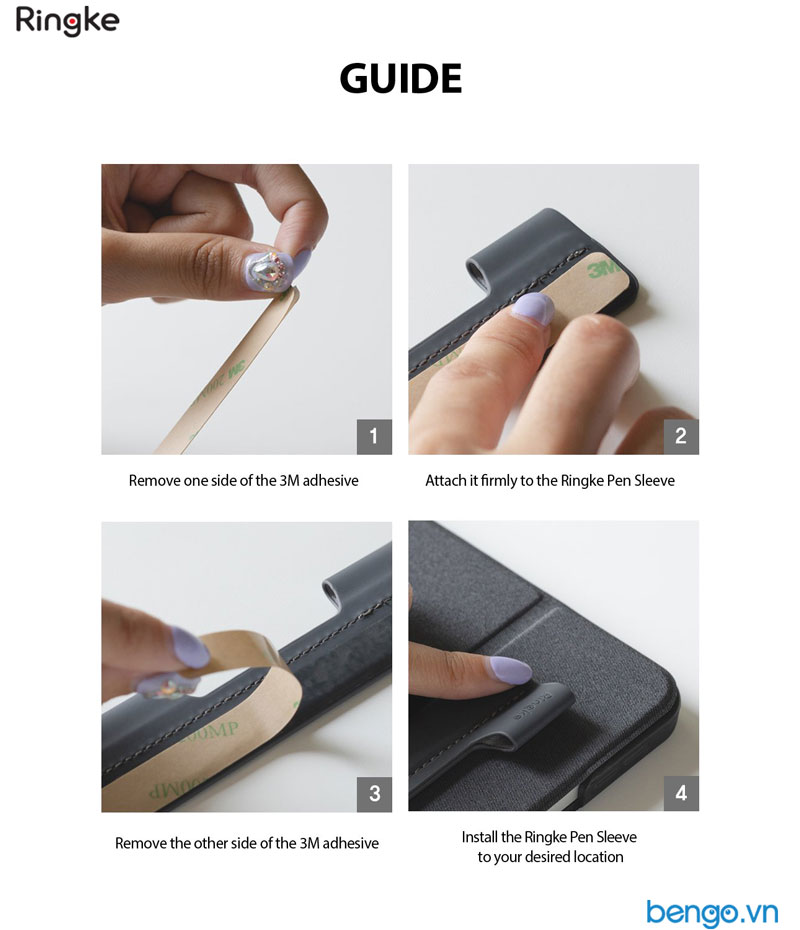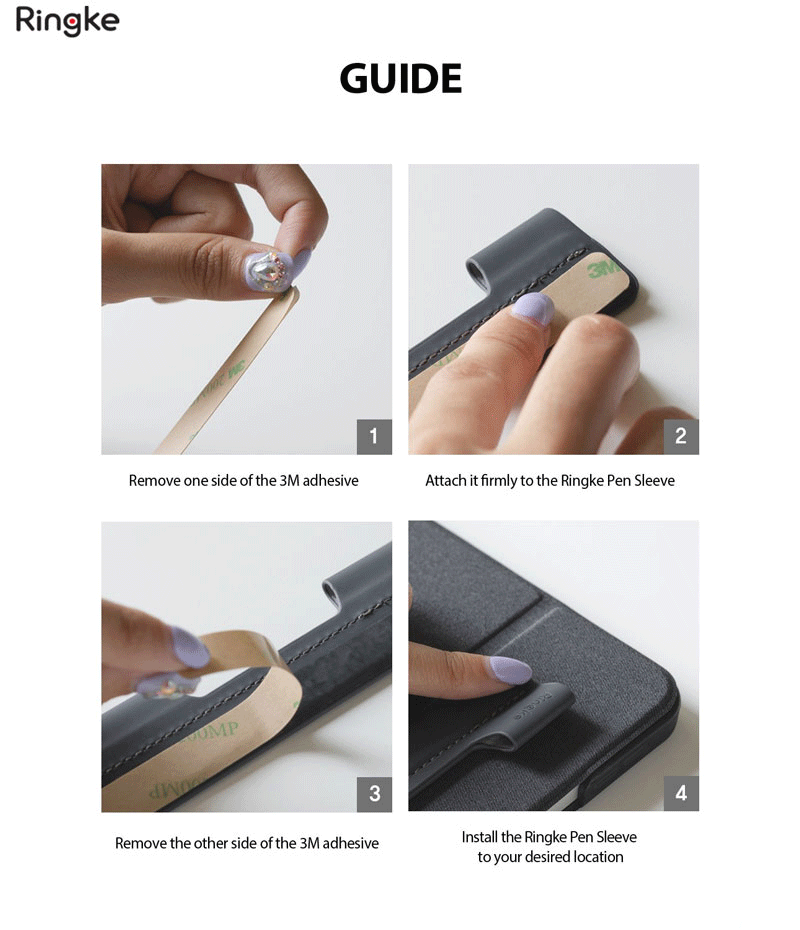 Ngăn đựng bút cảm ứng Ringke Pen Sleeve được thiết kế với miếng keo 3M dài giúp bạn có thể gắn Ringke Pen Sleeve ở bất kỳ đâu và trên mọi vật dụng.