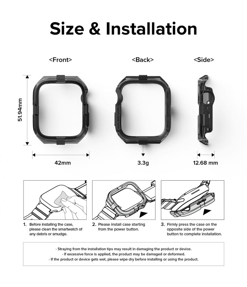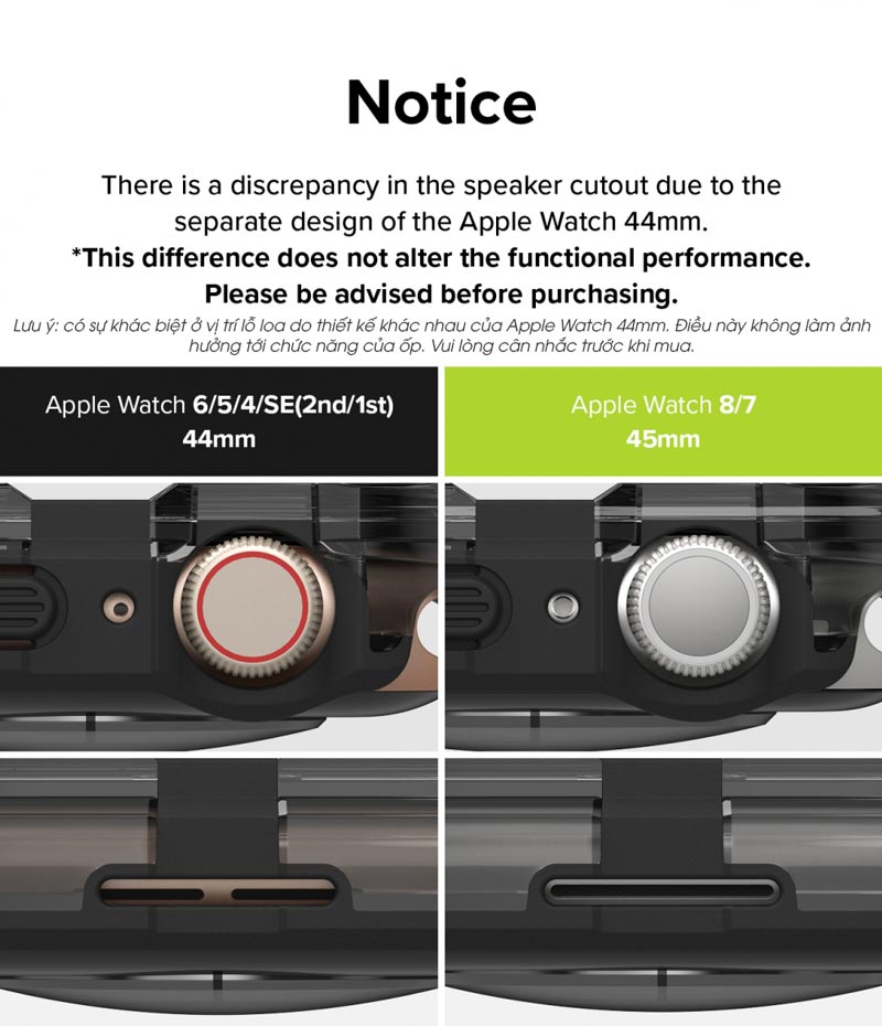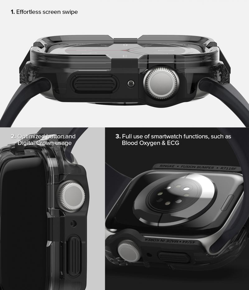 - Ốp Ringke Fusion Bumper tương thích với: Apple Watch 8/7 (45 mm) và Apple Watch SE (1st, 2nd)/6/5/4 (44 mm)