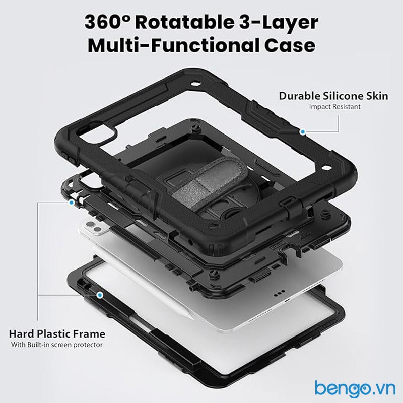 Ốp lưng iPad Pro 11″ M4 chống sốc có dây đeo và chân dựng với nhiều chức năng độc đáo