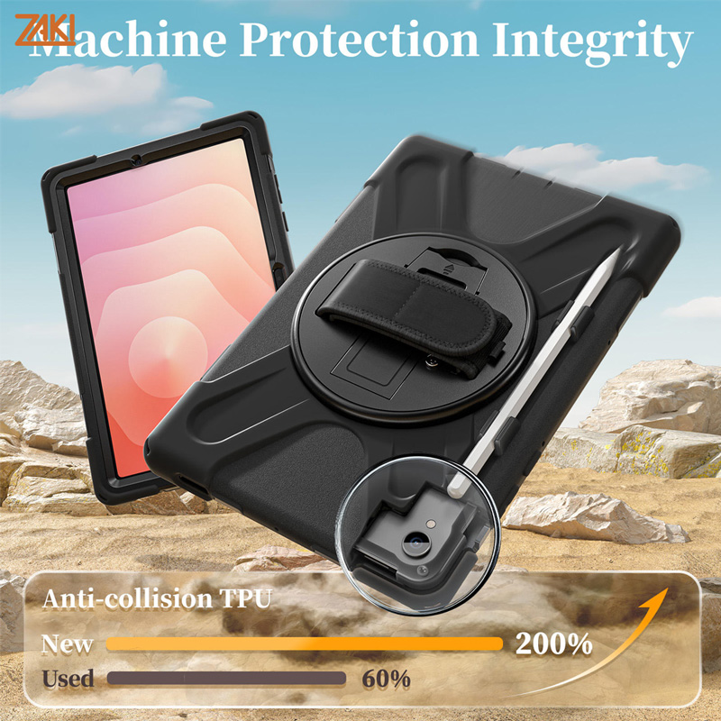 Ốp lưng chống sốc Samsung Galaxy Tab S11 Zaki JGX series có dây đeo – Đen