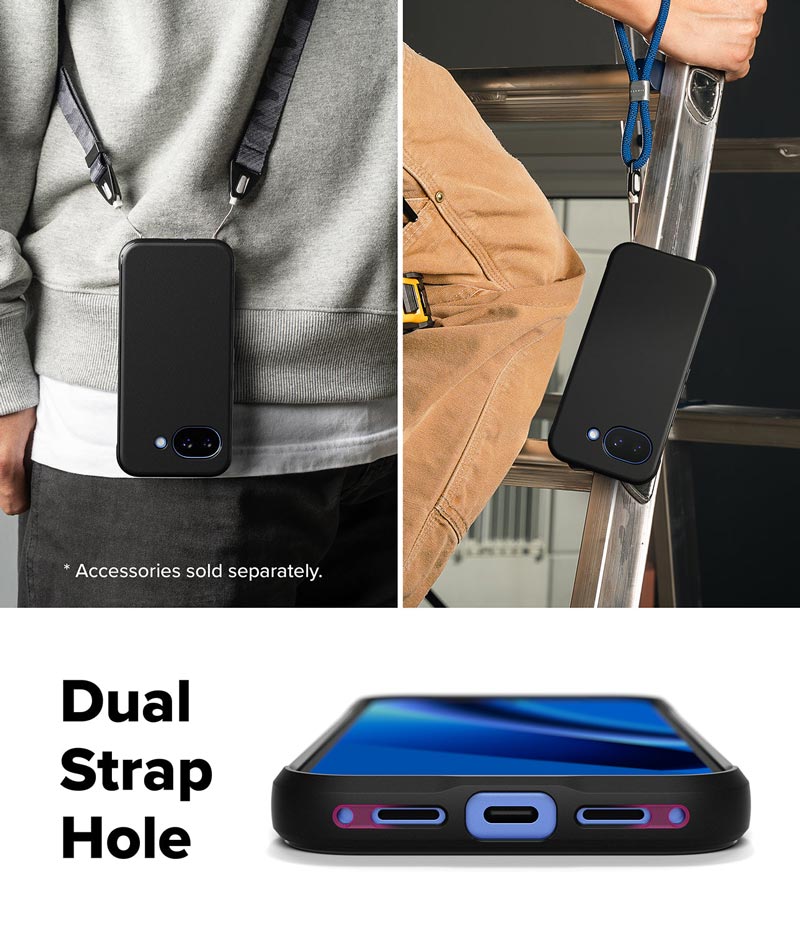 - Có lỗ xỏ dây đeo tích hợp để gắn dây đeo Ringke strap và các phụ kiện. Lưu ý: dây đeo được bán riêng. Hình ảnh chỉ minh họa cách sử dụng sản phẩm.