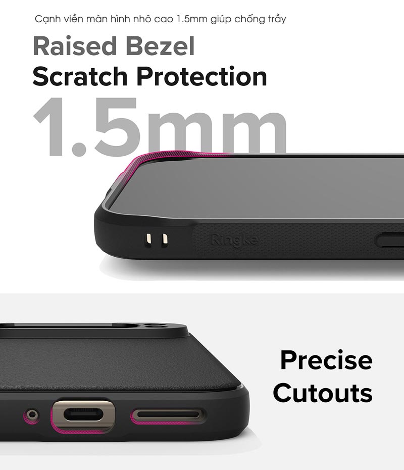 - Thiết kế cạnh viền màn hình nhô cao 1.5 mm giúp chống trầy