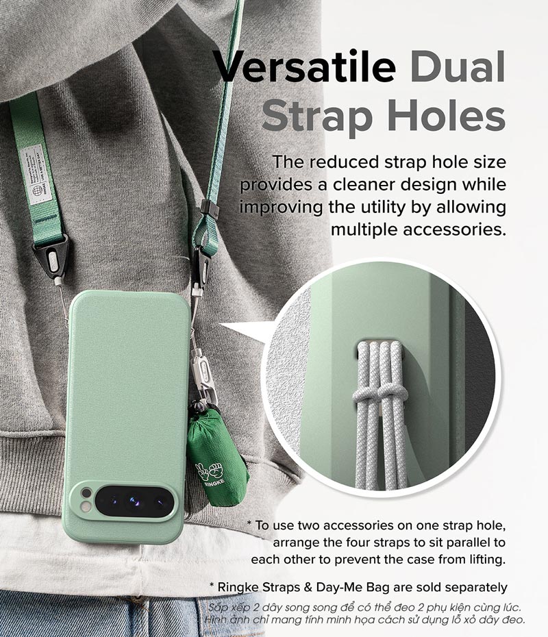 - Kích thước lỗ xỏ dây đeo cải tiến cho phép treo (móc) được 2 phụ kiện cùng lúc. Lưu ý: dây đeo được bán riêng. Hình ảnh chỉ minh họa cách sử dụng sản phẩm.