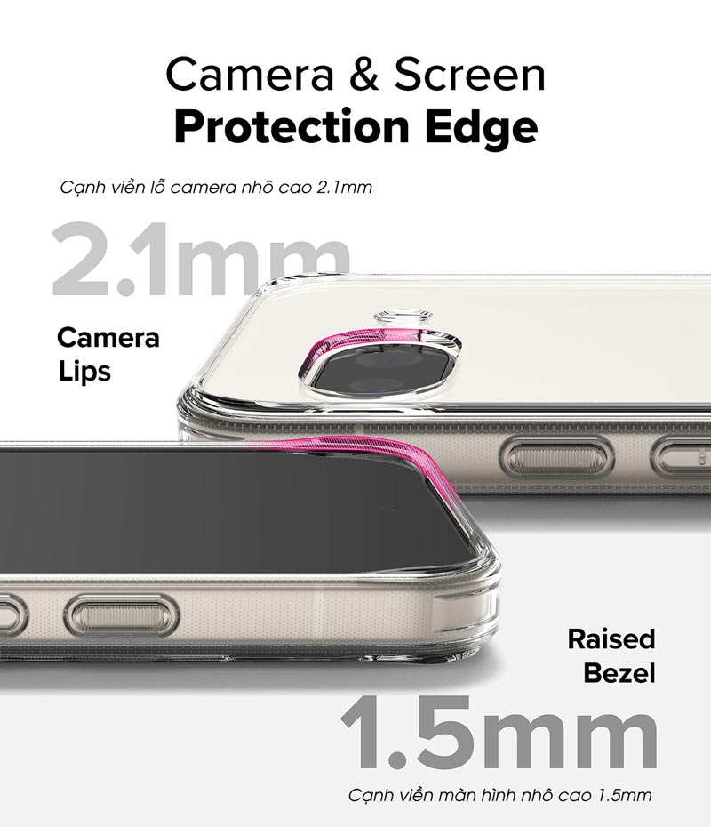 - Thiết kế cạnh viền camera nhô cao 2.1mm và thiết kế cạnh viền màn hình nhô cao 1.5mm giúp chống trầy.