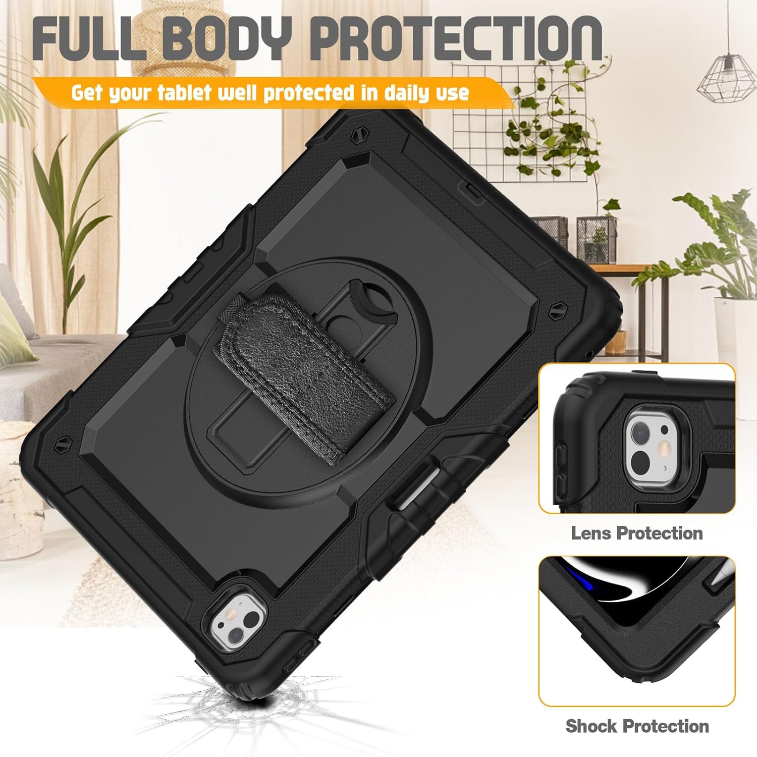 Ốp lưng iPad Pro 11″ M5/M4 chống sốc có dây đeo và dán màn hình