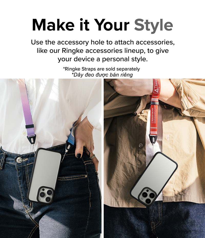 - Có lỗ xỏ dây đeo, bạn có thể mua thêm dây đeo Ringke Strap để tiện dụng hơn (Lưu ý: dây đeo bán riêng, hình ảnh chỉ minh họa cách sử dụng dây đeo)