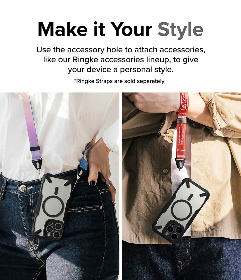 - Có lỗ xỏ dây đeo, bạn có thể mua thêm dây đeo Ringke Strap để tiện dụng hơn (Lưu ý: dây đeo bán riêng, hình ảnh chỉ minh họa cách sử dụng dây đeo)