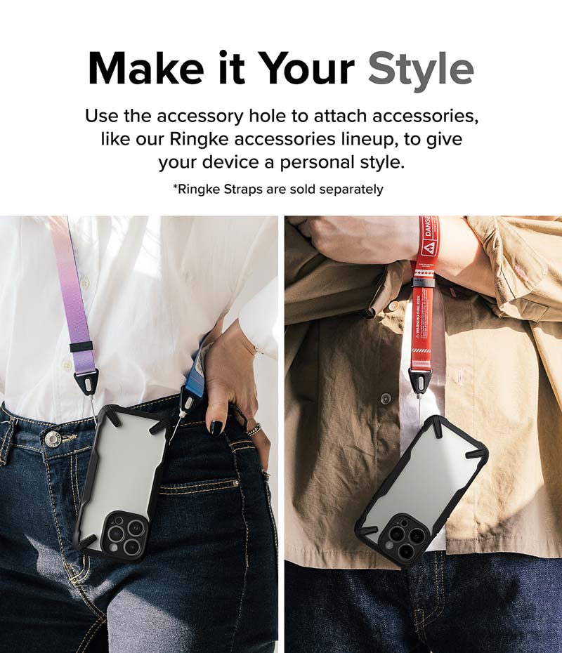 - Có lỗ xỏ dây đeo, bạn có thể mua thêm dây đeo Ringke Strap để tiện dụng hơn (Lưu ý: dây đeo bán riêng, hình ảnh chỉ minh họa cách sử dụng dây đeo)
