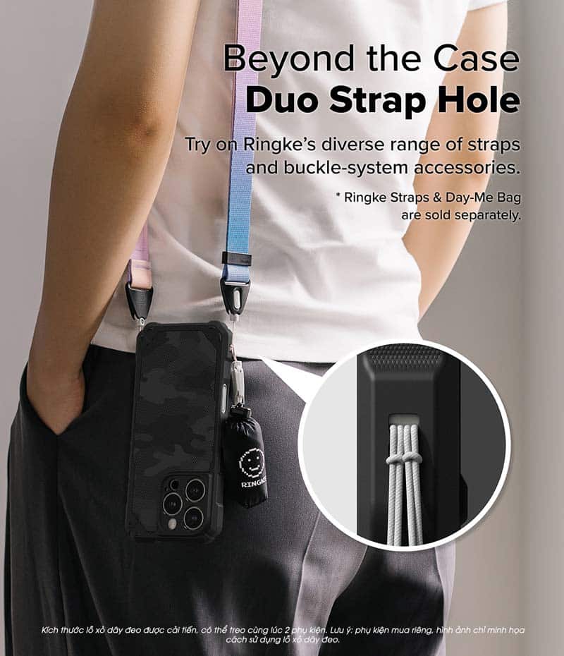 - Kích thước lỗ xỏ dây đeo cải tiến cho phép treo (móc) được 2 phụ kiện cùng lúc. Lưu ý: dây đeo được bán riêng. Hình ảnh chỉ minh họa cách sử dụng sản phẩm.
