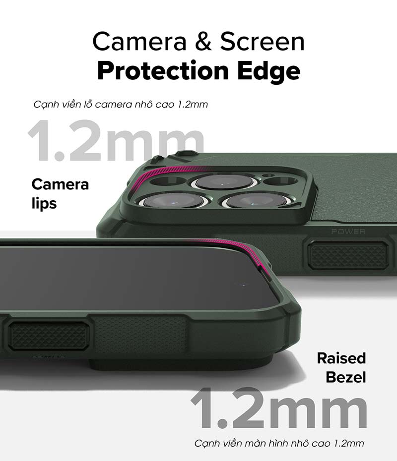 - Thiết kế cạnh viền lỗ camera nhô cao 1.2 mm và thiết kế cạnh viền màn hình nhô cao 1.2 mm giúp chống trầy.