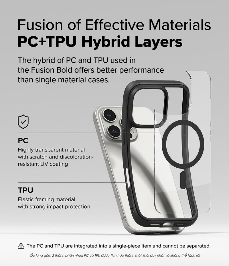 Fusion Bold Magnetic là mẫu thiết kế mới năm nay dành cho iPhone 16 Series có hỗ trợ sạc MagSafe với nâng cấp cạnh viền nhám giúp cầm chắc tay, có màu đen giúp tránh trường hợp bị ngả màu sau một thời gian sử dụng. Ngoài ra, thiết kế này đem lại cảm giác độc đáo cho iPhone của bạn trong khi vẫn giữ được các ưu điểm mỏng, nhẹ, chống sốc tốt của dòng Fusion truyền thống.