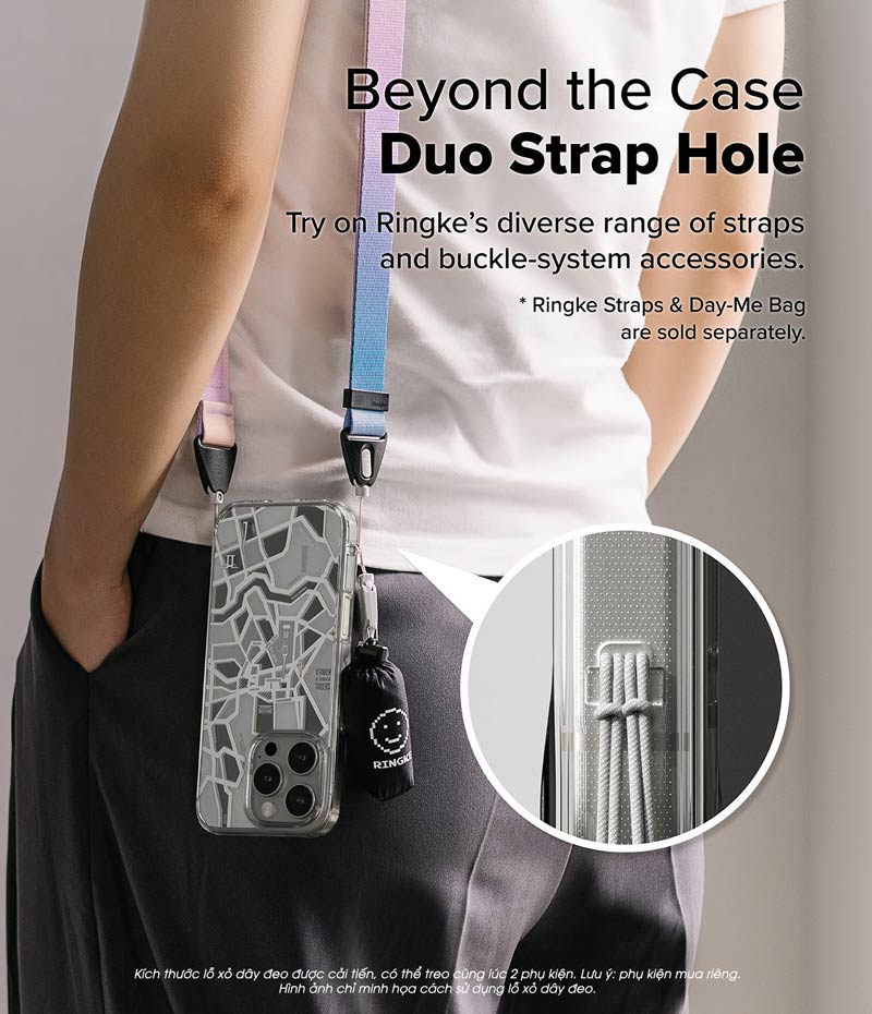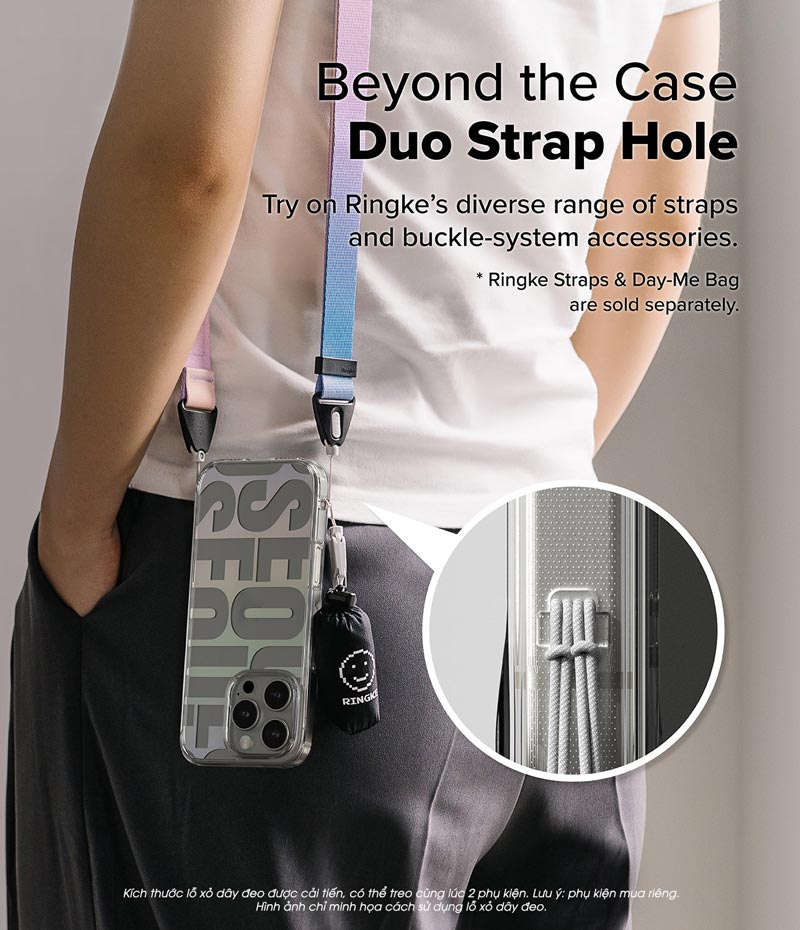 - Kích thước lỗ xỏ dây đeo cải tiến cho phép treo (móc) được 2 phụ kiện cùng lúc. Lưu ý: dây đeo được bán riêng. Hình ảnh chỉ minh họa cách sử dụng sản phẩm.