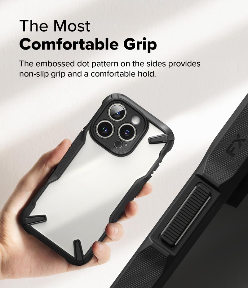 Sản phẩm ốp lưng iPhone 16 Pro của Ringke dòng Fusion X với thiết kế chống sốc bảo vệ điện thoại của bạn cực tốt, cùng với những gờ nổi ở mặt lưng mang đến cảm giác cầm nắm vô cùng chắc chắn.