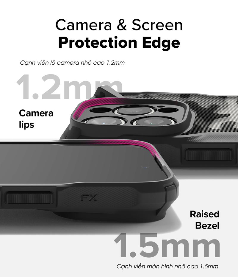 - Thiết kế cạnh viền lỗ camera nhô cao 1.2 mm và thiết kế cạnh viền màn hình nhô cao 1.5 mm giúp chống trầy.