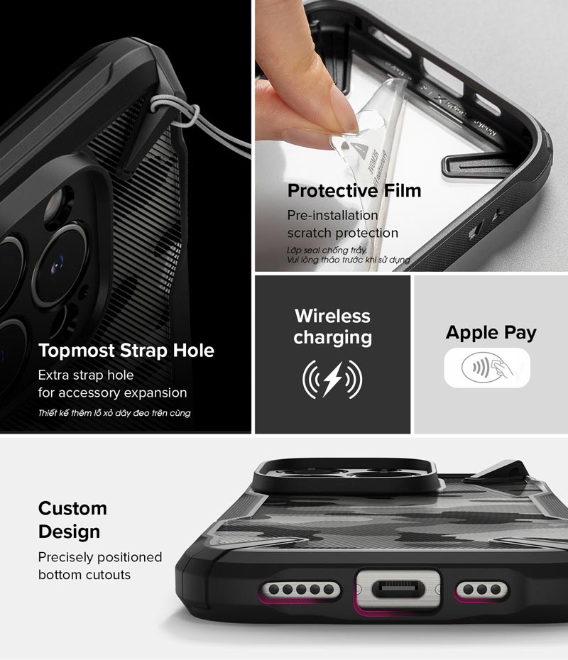 - Tương thích với dán bảo vệ camera Ringke Lens Frame Glass hoặc dán cường lực Full Cover Glass, bạn có thể mua thêm dán camera để bảo vệ tối ưu cho thiết bị.