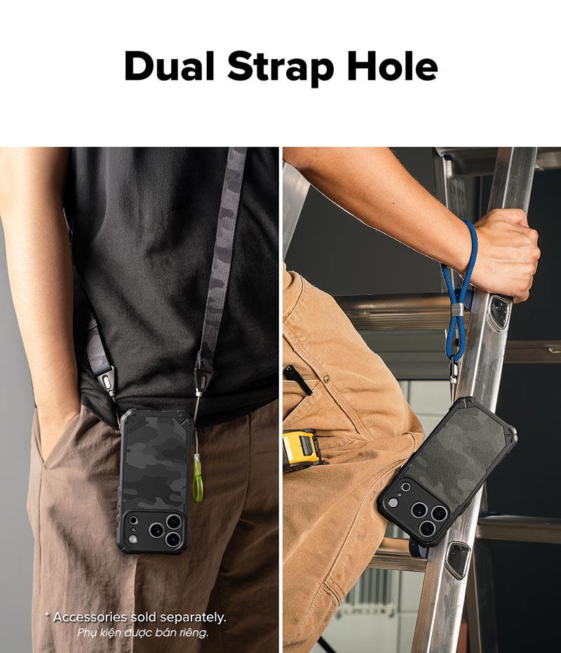 - Kích thước lỗ xỏ dây đeo cải tiến cho phép treo (móc) được 2 phụ kiện cùng lúc. Lưu ý: dây đeo được bán riêng. Hình ảnh chỉ minh họa cách sử dụng sản phẩm.