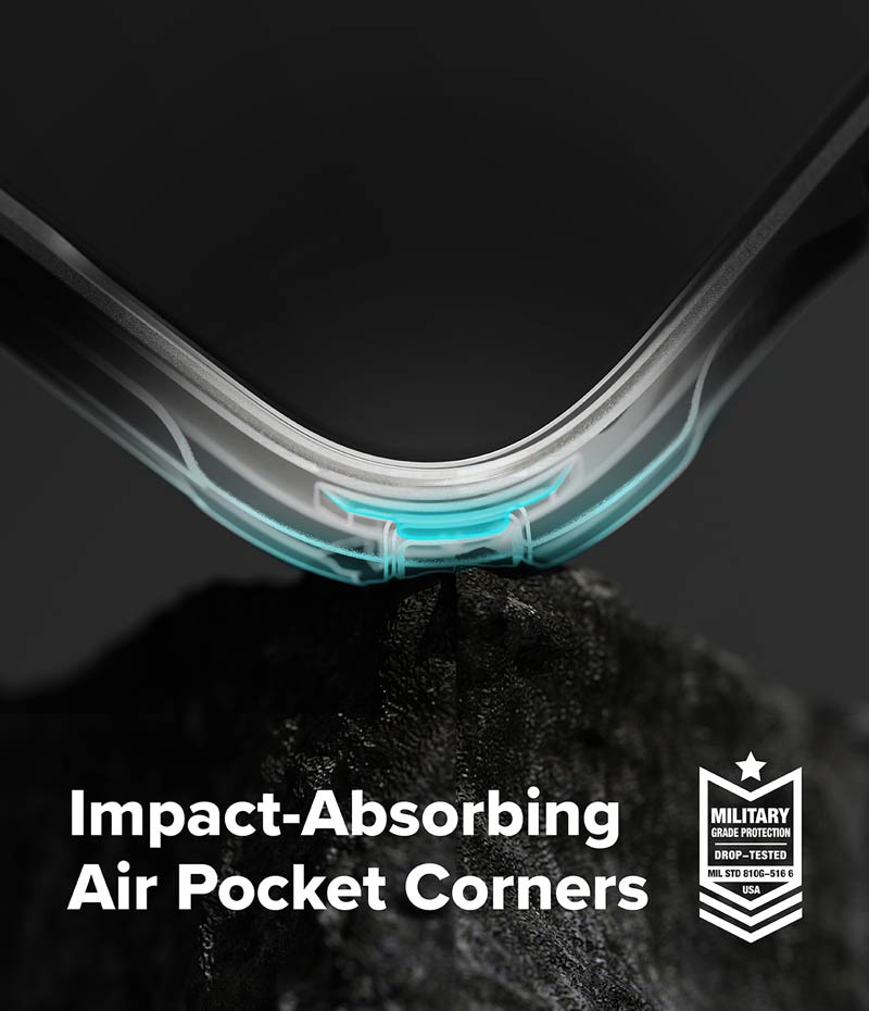 - Ốp lưng được thiết kế các túi khí ở 4 góc của vỏ ốp, cùng thiết kế X-Frame đặc trưng của dòng Fusion X giúp bảo vệ điện thoại khỏi va đập tốt hơn, đạt tiểu chuẩn chống sốc Quân đội MIL STD 810G-516.6
