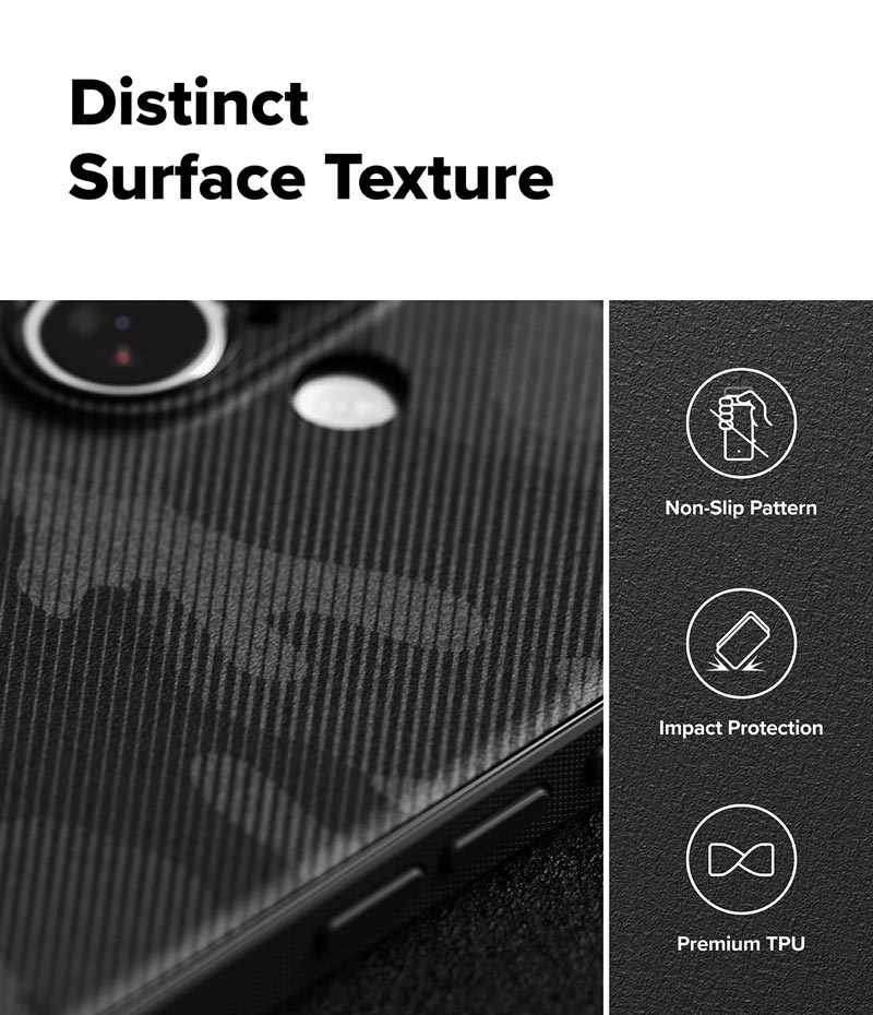 - Thiết kế hoạ tiết camo cá tính, được làm từ nhựa dẻo TPU với cạnh viền được thiết kế hoạ tiết chấm nổi mang lại cảm giác cầm chắc tay, chống trượt.