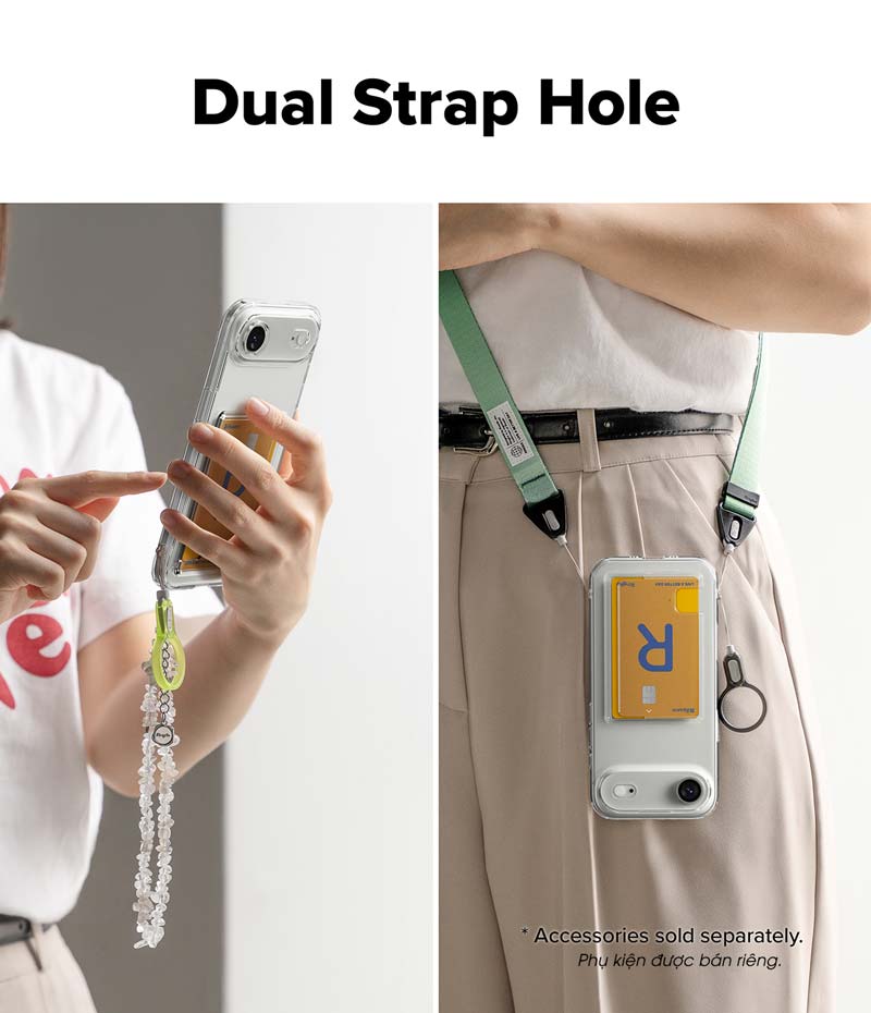 - Kích thước lỗ xỏ dây đeo cải tiến cho phép treo (móc) được 2 phụ kiện cùng lúc. Lưu ý: dây đeo được bán riêng. Hình ảnh chỉ minh họa cách sử dụng sản phẩm.