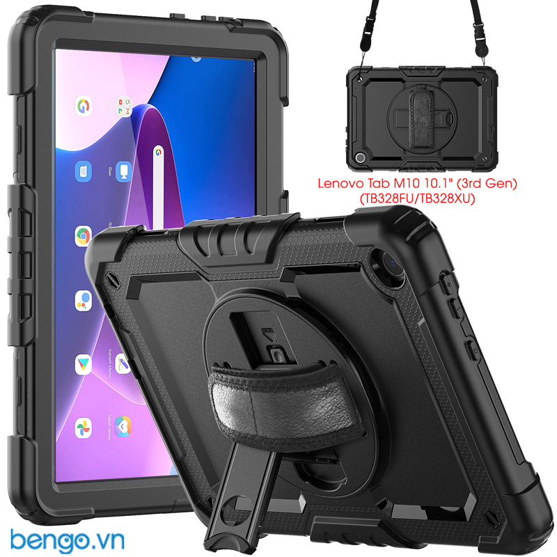 Ốp lưng Lenovo Tab M10 10.1" (3rd Gen) (TB328FU/TB328XU) chống sốc có chân dựng, dây đeo vai và tay - Đen