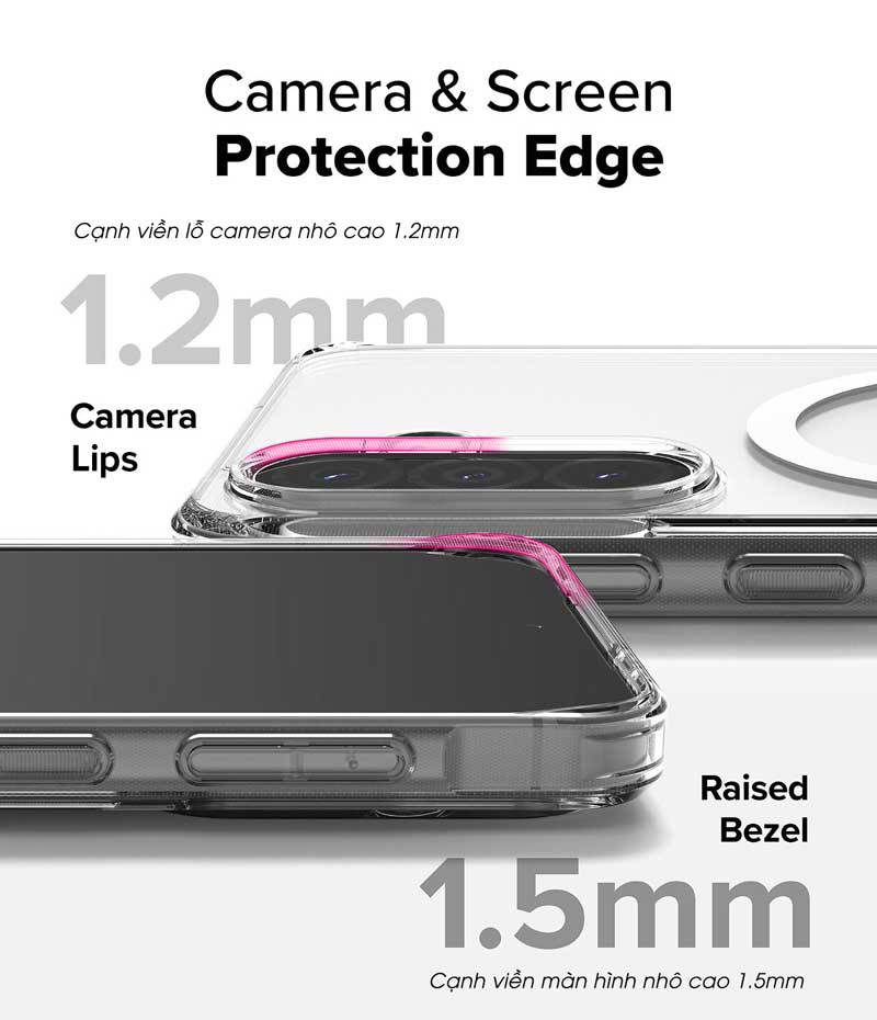 - Thiết kế cạnh viền camera nhô cao 1.2 mm và thiết kế cạnh viền màn hình nhô cao 1.5 mm giúp chống trầy.