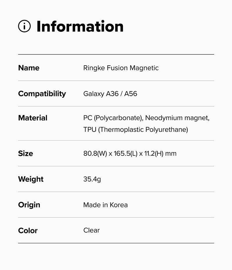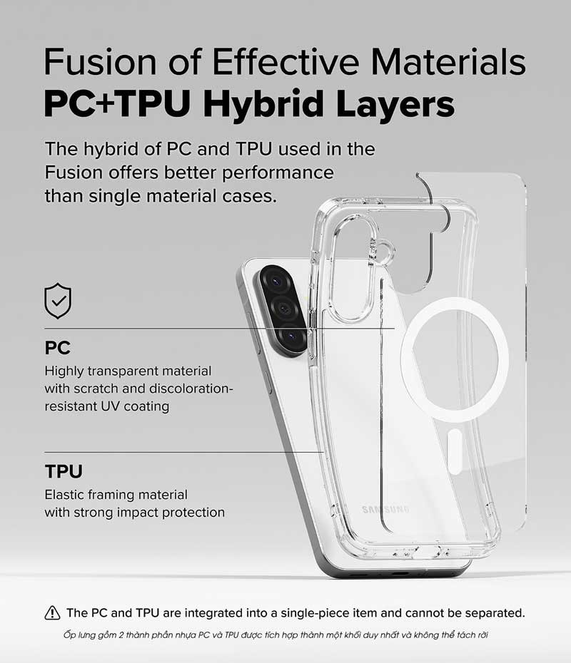 - Vì điện thoại Galaxy A56 và A36 không hỗ trợ sạc không dây, do đó ốp lưng Fusion Magnetic chỉ hỗ trợ sử dụng các phụ kiện MagSafe như ngăn đựng thẻ, giá đỡ…và KHÔNG THỂ sử dụng tính năng sạc MagSafe do thiết bị không hỗ trợ.