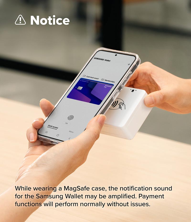 - Khi sử dụng ốp lưng MagSafe, âm thanh thông báo cho Samsung Pay có thể được khuếch đại. Các chức năng thanh toán hoạt động bình thường và không bị ảnh hưởng gì.