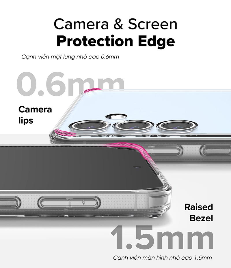 - Thiết kế cạnh gờ mặt lưng nhô cao 0.6mm và thiết kế cạnh viền màn hình nhô cao 1.5mm giúp chống trầy.