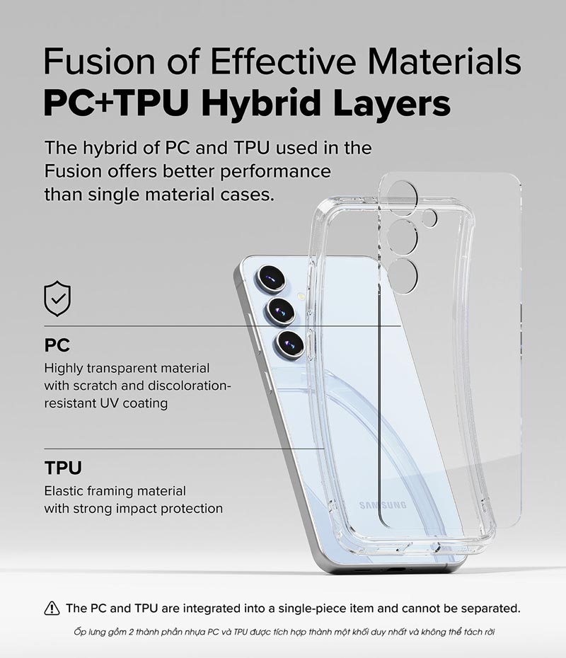 - Ốp được thiết kế 2 thành phần: mặt lưng nhựa cứng Polycarbonate và viền nhựa dẻo TPU giúp dễ dàng tháo lắp ốp