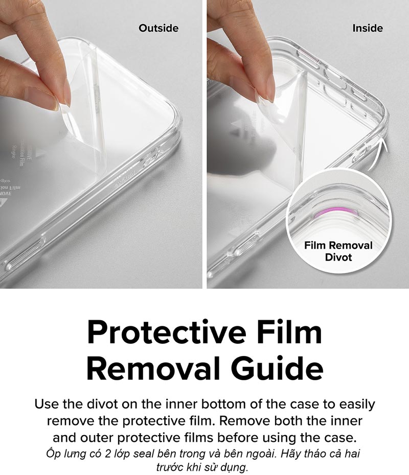 - Ốp có hai lớp seal bên trong và bên ngoài, vui lòng tháo seal trước khi sử dụng.