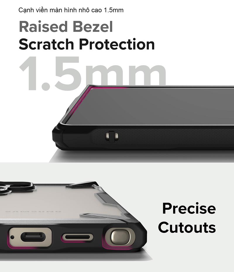 - Thiết kế cạnh viền lỗ camera nhô cao 1.2 mm và thiết kế cạnh viền màn hình nhô cao 1.5 mm giúp chống trầy.