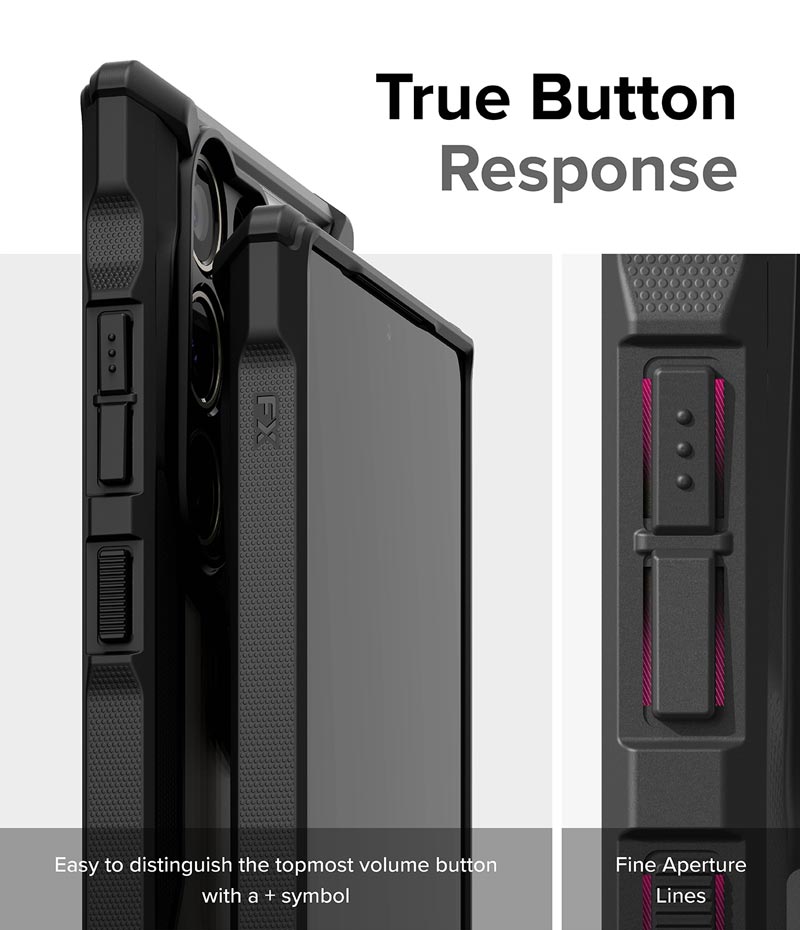 Sản phẩm ốp lưng Samsung Galaxy S24 Ultra của Ringke dòng Fusion X với thiết kế chống sốc bảo vệ điện thoại của bạn cực tốt, cùng với những gờ nổi ở mặt lưng mang đến cảm giác cầm nắm vô cùng chắc chắn.