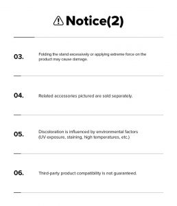 - Gập chân đế quá mức hoặc tác dụng lực quá mạnh vào sản phẩm có thể gây hư hỏng.