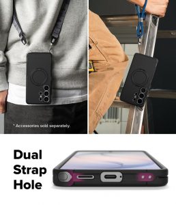 - Có lỗ xỏ dây đeo, bạn có thể mua thêm dây đeo Ringke Strap để tiện dụng hơn (Lưu ý: dây đeo bán riêng, hình ảnh chỉ minh họa cách sử dụng dây đeo)